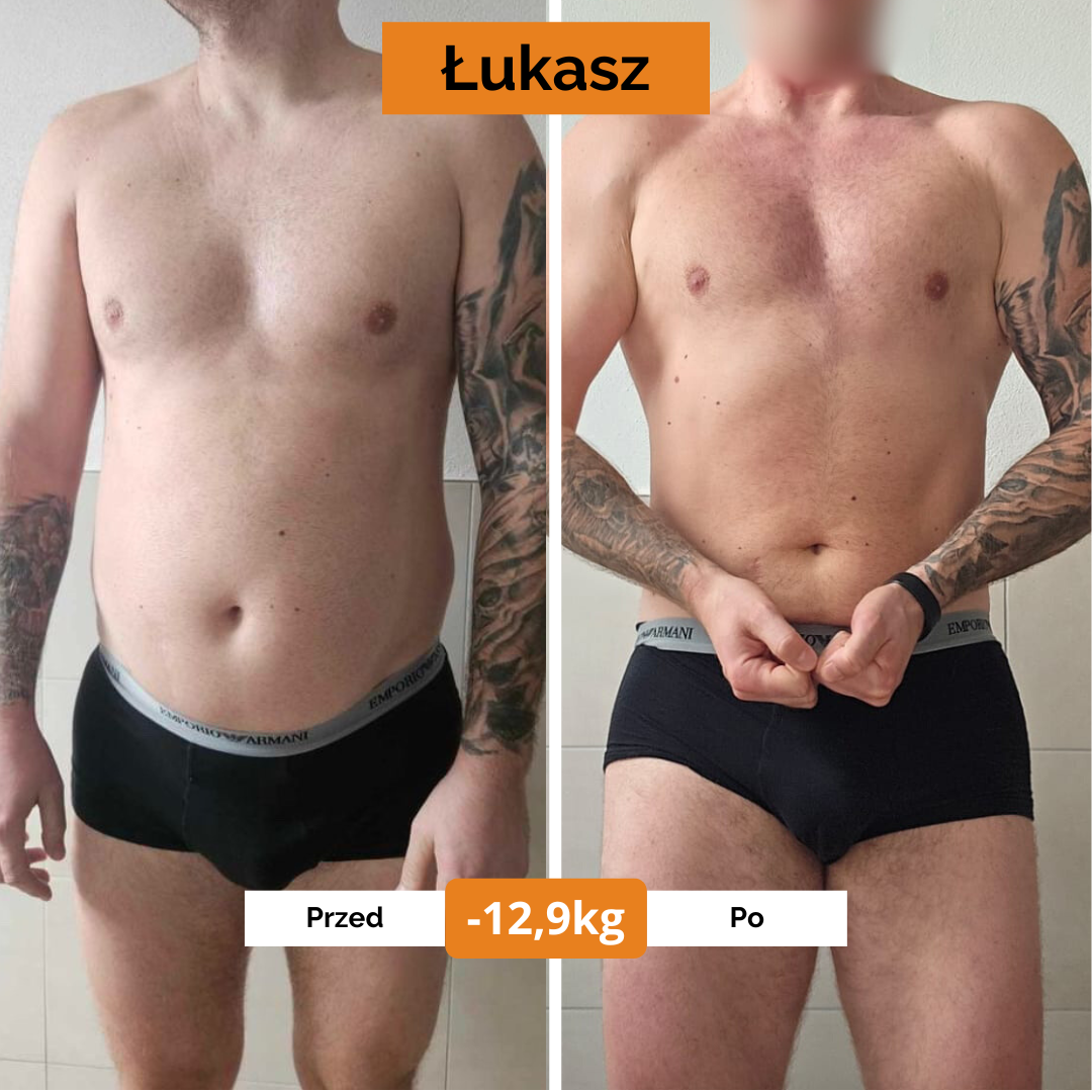 Cześć! Chciałem Ci podziękować za świetną współpracę! Jestem pozytywnie zaskoczony bo mam więcej energii, czuję się świetnie i widać efekty (już kilka kilogramów poleciało w dół ) Co dla mnie najważniejsze, nie katuję się dietą. Jem normalnie, bez żadnych głodówek czy wyrzeczeń. Rozpiska jest pełna smacznych, różnorodnych posiłków od makaronu z krewetkami po klasycznego kotleta z kurczaka, a jak mam ochotę, mogę też spokojnie zjeść obiad na mieście. Czuję się bardzo zaopiekowany z Twojej strony. Zawsze spieszysz z odpowiedzią na nurtujące mnie pytania. Nie mogę się doczekać dalszych efektów!!!!